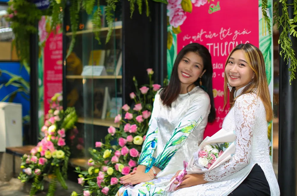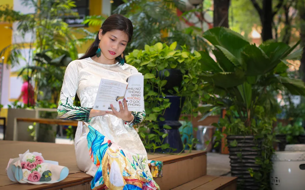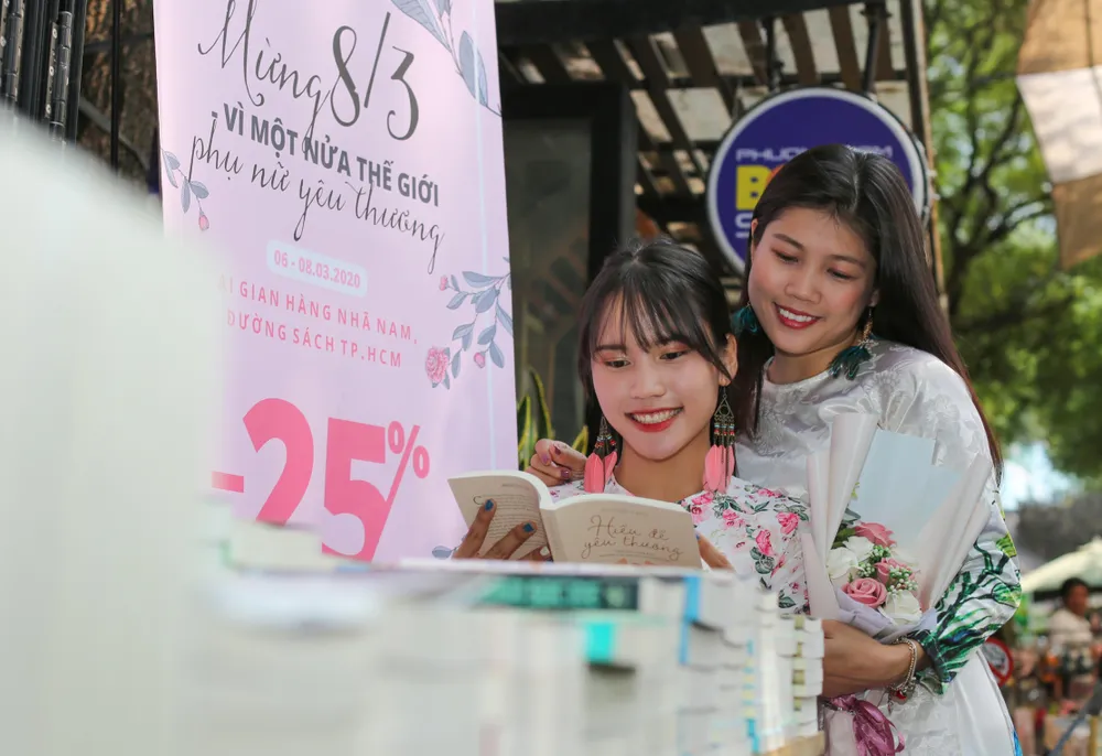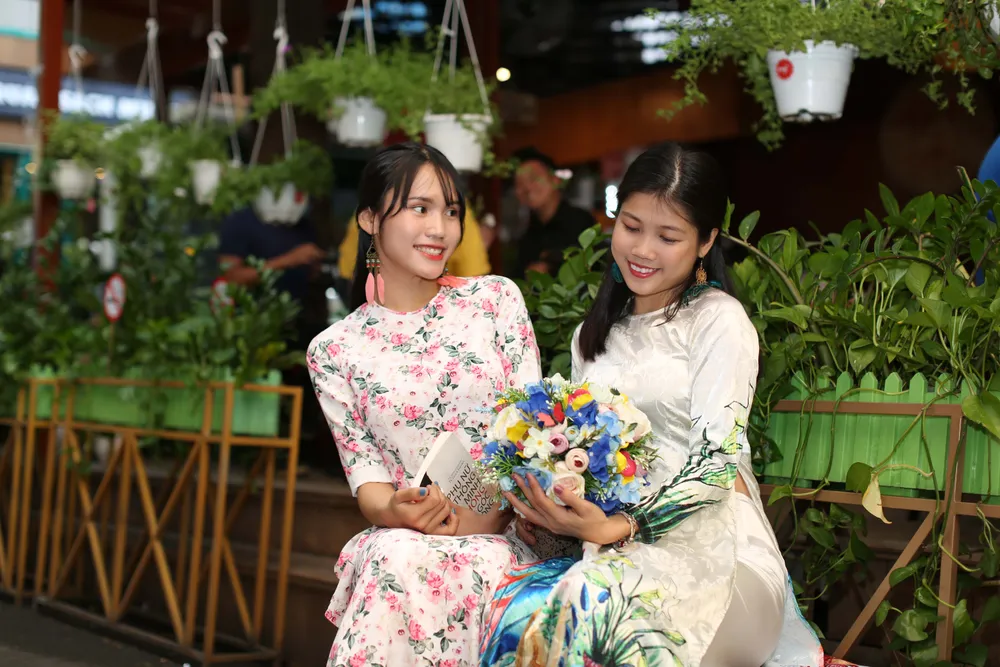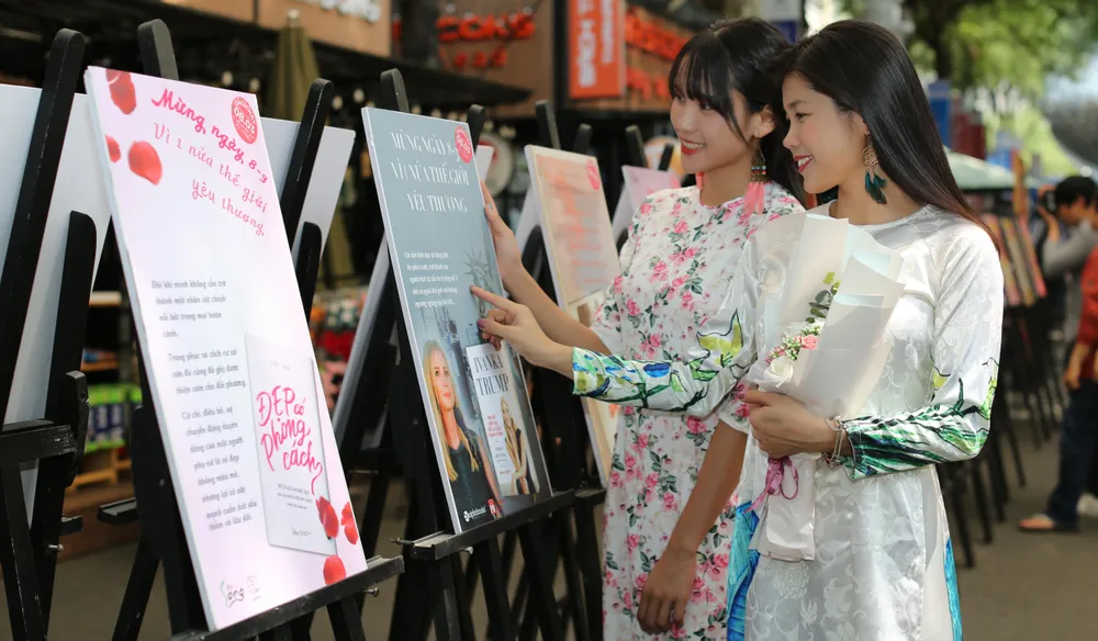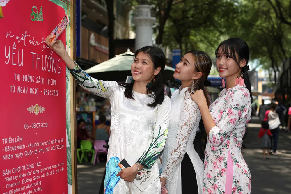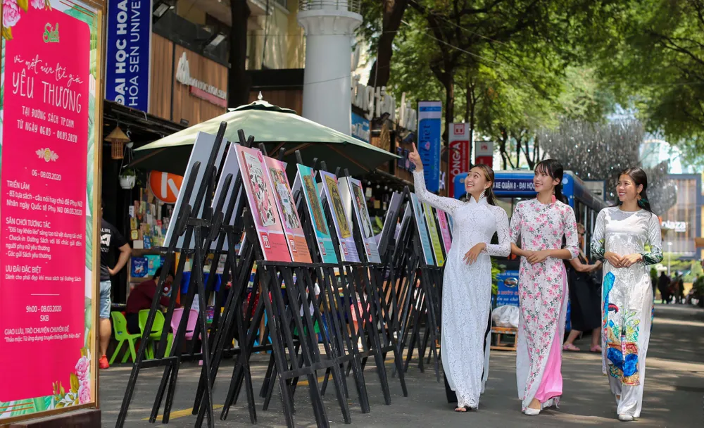 Mộng Tuyền trong buổi dạo phố trên đường sách Nguyễn Văn Bình.