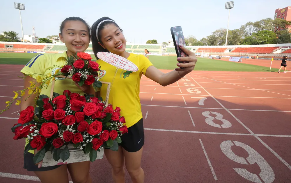 Các VĐV điền kinh TPHCM đã có được ngày 8-3 trọn vẹn khi được ban HLV tặng hoa, quà… Kèm thêm điều kiện được nghỉ tập sớm để dành thời gian trang điểm hoá “thiên nga” và diện áo dài thật xinh đẹp tung tăng tại đường sách Nguyễn Văn Bình nhân ngày Quốc tế phụ nữ.