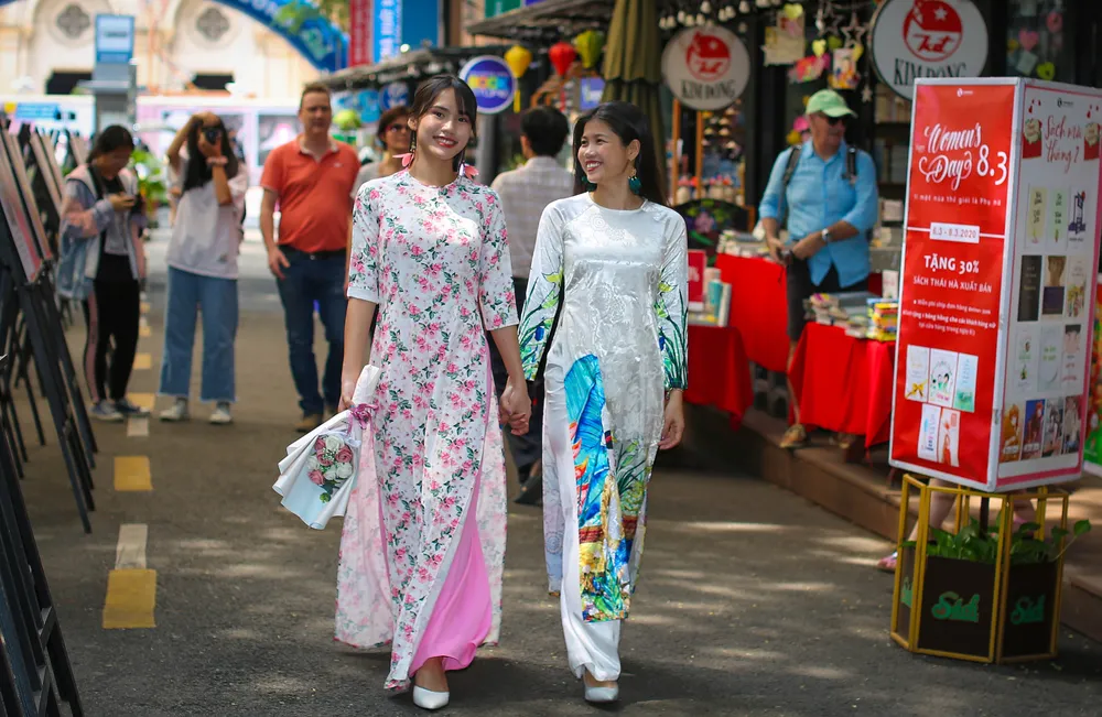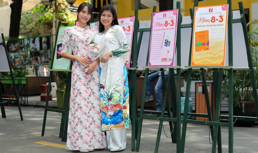 Tự tin khoe dáng trong chiếc áo dài truyền thống của tổ điền kinh TPHCM nhân ngày Quốc tế phụ nữ 8-3.
