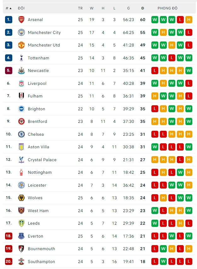 Pháo thủ có thừa tiềm lực để đè bẹp Bournemouth tại Emirates và chính điều đó sẽ gây áp lực không nhỏ cho Man City khi họ ra sân chỉ vài giờ sau trong trận đấu buộc phải thắng trước ngựa ô Newcastle. Chim chích chòe kéo quân đến hiểm địa Etihad với hy vọng sẽ bỏ lại sau lưng nỗi thất vọng cay đắng sau thất bại ở trận chung kết Cúp Liên đoàn. Nhưng HLV Eddie Howe không giấu khát vọng gây sốc cho người đồng sự Pep Guardiola trong nỗ lực tranh giành suất vào tốp 4.