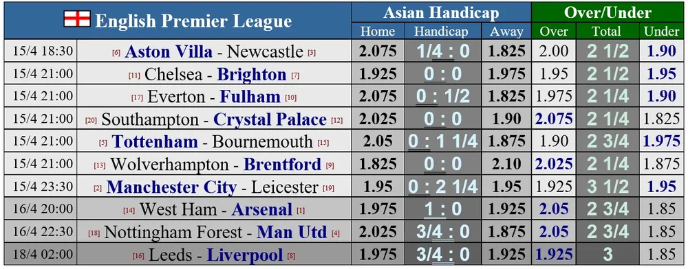 Vòng 31 cũng có thể là một bước ngoặt với Aston Villa nếu họ đánh bại được Newcastle để chen chân vào cuộc đua giành suất dự cúp châu Âu. Manchester United cũng có thể tiến một bước gần hơn đến Champions League mùa tới khi chơi tại Nottingham Forest.