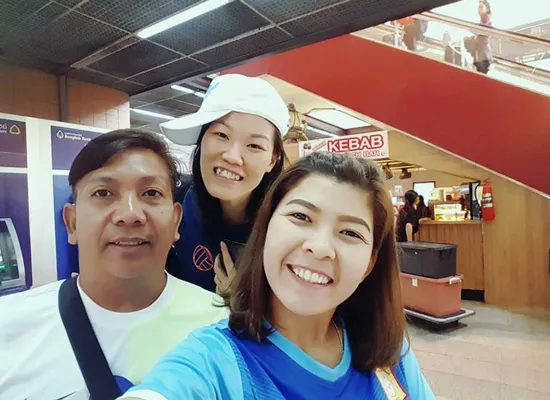 Ngọc Hoa (giữa) trước giờ chia tay các đồng nghiệp ở CLB Bangkok Glass. Ảnh: T.L.