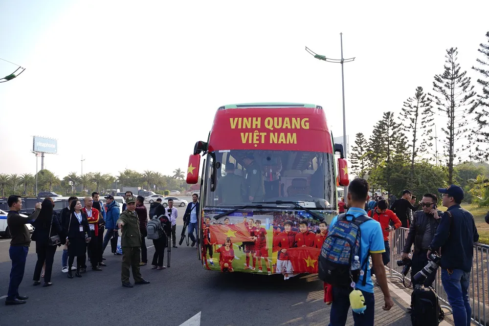 Theo dự kiến, khoảng 18 giờ ngày 11-12, chuyến bay đưa đội tuyển bóng đá nữ và tuyển U22 Việt Nam mới đáp xuống sân bay quốc tế Nội Bài, tuy nhiên, lúc 15 giờ chiều cùng ngày, hàng trăm cổ động viên đã có mặt trước cổng nhà ga quốc tế để chào đón...