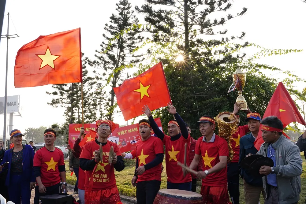 Cổ động viên đến sớm đón 2 đội tuyển Việt Nam