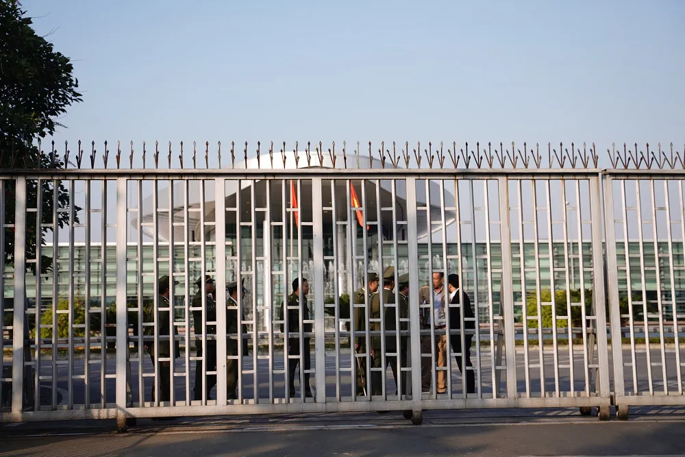 Hàng chục phóng viên cũng có mặt chờ đoàn