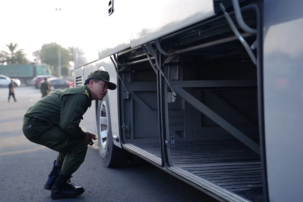 Tất cả các xe đều được kiểm tra an ninh nghiêm ngặt