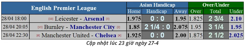 Khả năng thắng cuộc: Leicester City 33% hòa 35% Arsenal 32%