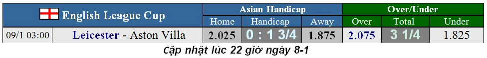 Sau khi loại Wigan Athletic ở vòng 3 cúp FA hôm cuối tuần, Leicester City sẽ nhắm kéo dài chuỗi trận thắng (trong mọi giải) của họ lên con số 4 khi tiếp Aston Villa ở sân King Power.