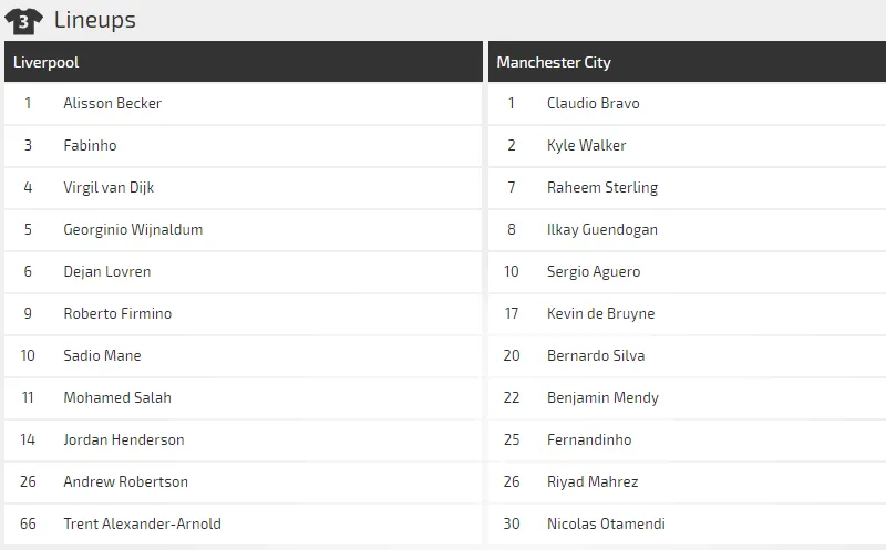 Trong buổi họp báo hôm thứ Sáu, HLV Jurgen Klopp khẳng định là Jordan Henderson và Virgil van Dijk sẽ hồi phuc kịp để đọ sức với Manchester City. Klopp cũng khẳng định Joel Matip, Xherdan Shaqiri và Nathaniel Clyne đều vắng mặt vì chấn thương.