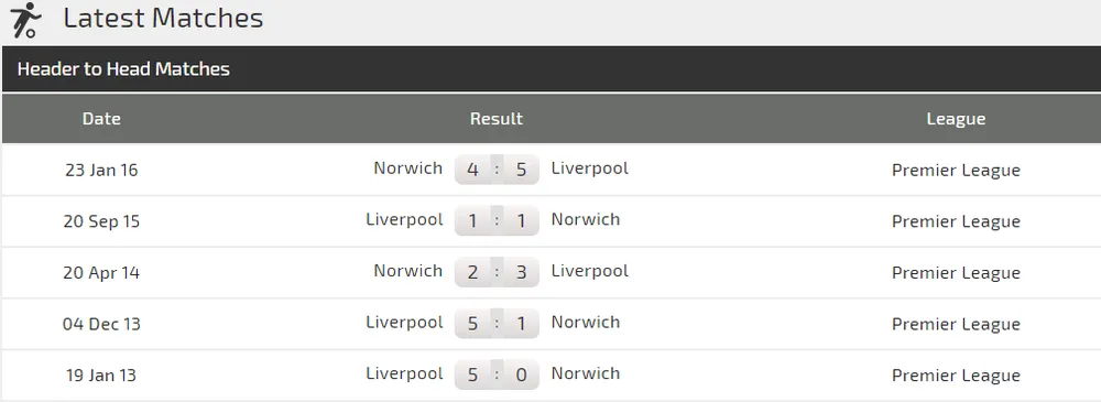 Đây là lần đầu 2 đội gặp nhau kể từ trận cầu khủng khiếp ở Carrow Road hồi tháng 1-2016, nơi Liverpool thắng 5-4. Sebastien Bassong gỡ hòa cho Norwich ở phút cộng thêm thứ 2, nhưng Adam Lallana đã ghi bàn quyết định chiến thắng.