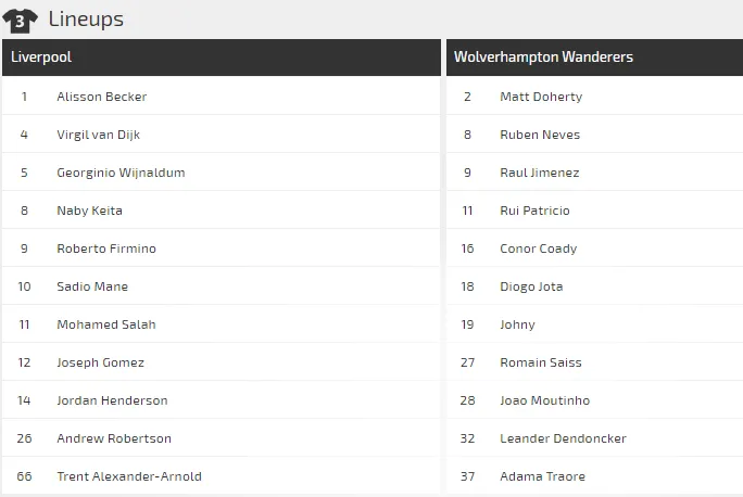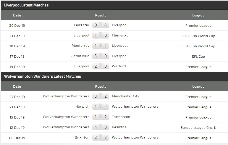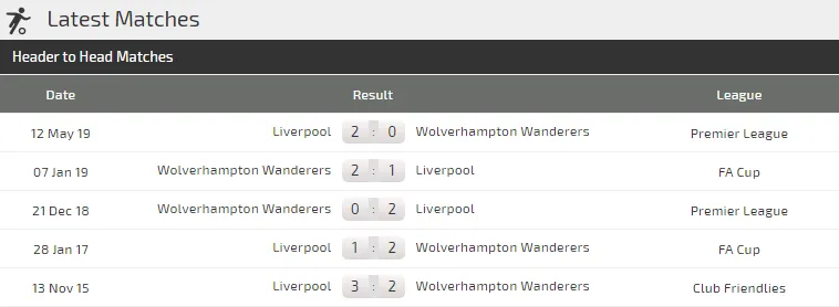 Chìa khóa của trận cầu này không chỉ là phong độ sung mãn của Liverpool mà còn vì lịch sử đối đầu khi Liverpool thắng trong cả 5 trận đối đầu Wolves ở Premier League với tổng tỷ số 12-1. Họ cũng chỉ thua 1 trong 10 lần đụng độ.