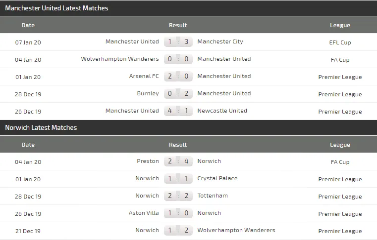 Man Utd thắng 8 trong 10 lần tiếp Norwich trên sân nhà (hòa 1 và thua 1), dù lần gặp gần nhất trên sân Old Trafford là tháng 12-2015, họ đã để thua Norwich 1-2.