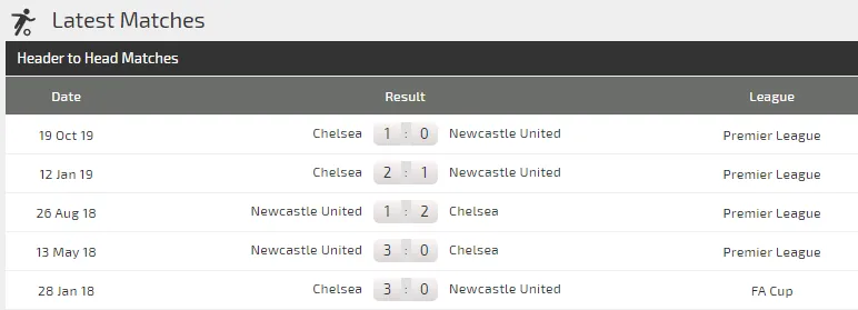 Chelsea từng thắng Newcastle 25 trận ở Premier League (Chích chòe là đối thủ ưa thích thứ 2 của Chelsea sau Tottenham, đợi bóng mà họ thắng đến 29 lần), nhưng 10 năm qua họ chưa bao giờ thắng 2 trận liên tiếp ở St James Park. Với Steve Bruce, Chelsea là đối thủ đại kỵ khi ông chì thắng đúng 1 trong 22 lần chạm trán ở Premier League: 5 hòa và 16 bại.