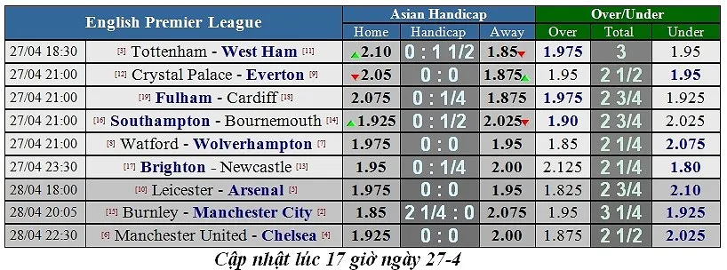 Tottenham hiện đứng thứ 3 với 70 điểm, sau đó là Chelsea (67 điểm), Arsenal (66 điểm) và Manchester United (64 điểm). Ở vỏng 36 này, khi Chelsea chơi trên sân Man United, Arsenal phải đá trên sân Leicester, thì Tottenham nếu thắng được West Ham xem như sẽ chạm đích: Bỏ túi suất dự Champions League mùa tới.