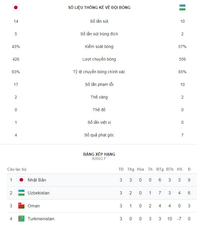 Dù chắc vé đi tiếp, nhưng Nhật Bản và Uzbekistan vẫn quyết đấu phân ngôi đầu bảng F. Tiền đạo Eldor Shomurodov đột phá mở tỷ số 1-0 nhưng 3 phút sau Muto Yoshinori gỡ hòa, Shiotani Tsukasa dứt điểm hiểm hóc ấn định chiến thắng 2-1. Nhật Bản nhất bảng F gặp Trung Quốc (nhì bảng C) ở vòng 1/8, Uzbekistan gặp ĐKVĐ Australia.