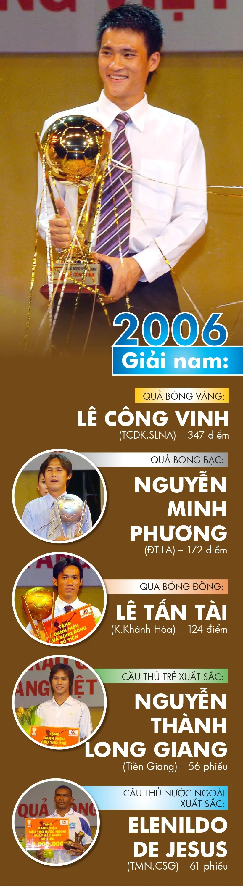 Tiền đạo của đội bóng xứ Nghệ Lê Công Vinh đã lần thứ hai đoạt danh hiệu Quả bóng vàng nam, trong khi đó Đào Thị Miện đã xuất sắc vượt qua các đồng nghiệp nữ để giành giải thưởng Quả bóng vàng nữ trong cuộc bầu chọn của năm 2006.