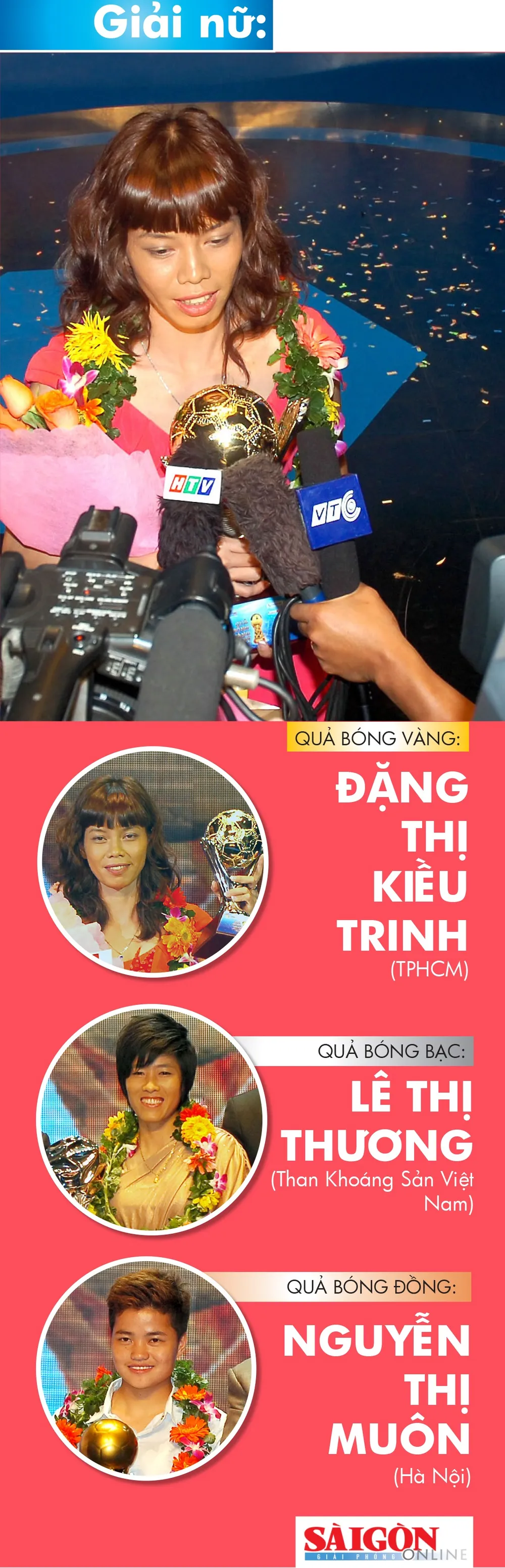 Còn ở hạng mục nữ, thủ môn Đặng Thị Kiều Trinh trở thành thủ môn thứ hai của TPHCM nhận được danh hiệu QBV nữ (trước đó là Nguyễn Thị Kim Hồng vào năm 2002). Quả bóng bạc thuộc về Lê Thị Thương và Quả bóng đồng thuộc về Nguyễn Thị Muôn.