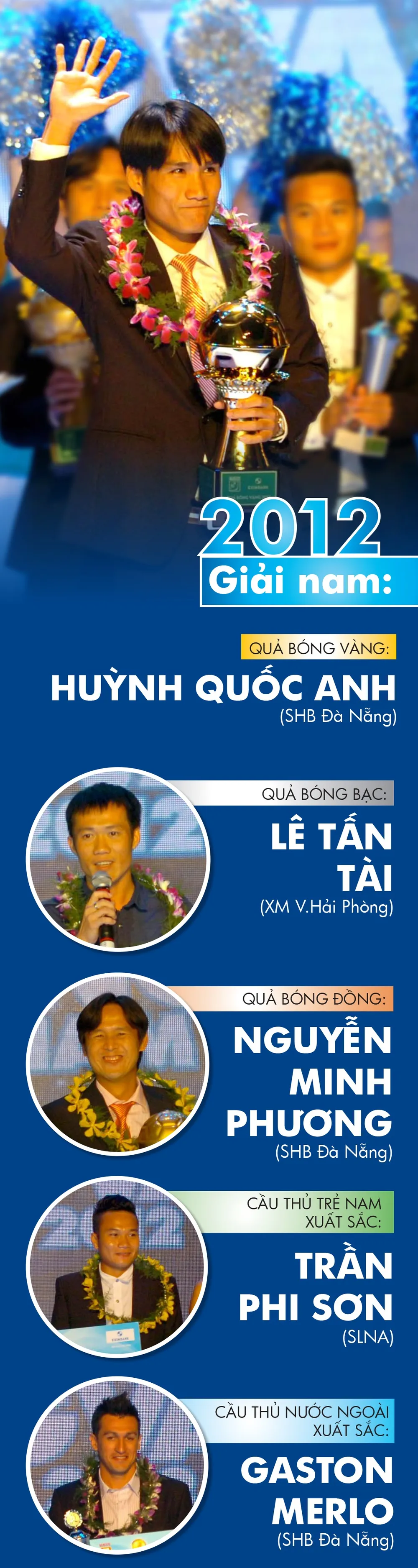 Năm 2012 được xem là năm đáng nhớ của đội Đà Nẵng khi có đến 3 cầu thủ bước lên bục nhận thưởng, trong đó Huỳnh Quốc Anh đã đánh dấu sự trở lại hoàn hảo khi được vinh danh ở giải thưởng Quả bóng Vàng.