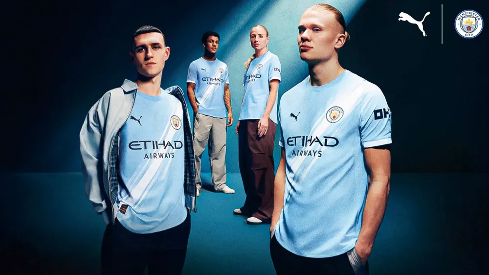 Puma thiết kế áo sân nhà xanh da trời với dải sash lần đầu xuất hiện, cổ cùng màu tạo vẻ mượt mà. Áo sân khách đen tuyền, gợi Johnny Cash hoặc tâm trạng trầm uất. Áo thứ ba xám mưa với điểm nhấn xanh neon, lấy cảm hứng từ mưa Tây Bắc. Áo thủ môn nhiều màu sặc sỡ, bao gồm hồng phấn.