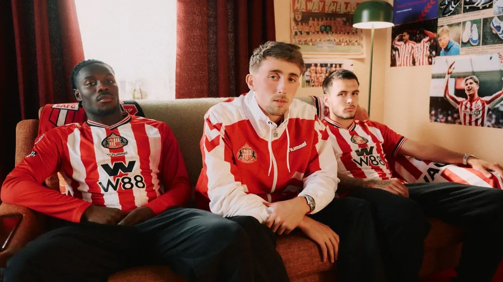 Hummel tạo áo sân nhà với cổ chữ V đen, sọc đỏ-trắng mảnh, huy hiệu căn giữa lần đầu từ thập niên 90. Áo sân khách xanh hoàng gia với họa tiết bàn cờ và ngọn hải đăng Roker Beach. Áo thứ ba đen tuyền.