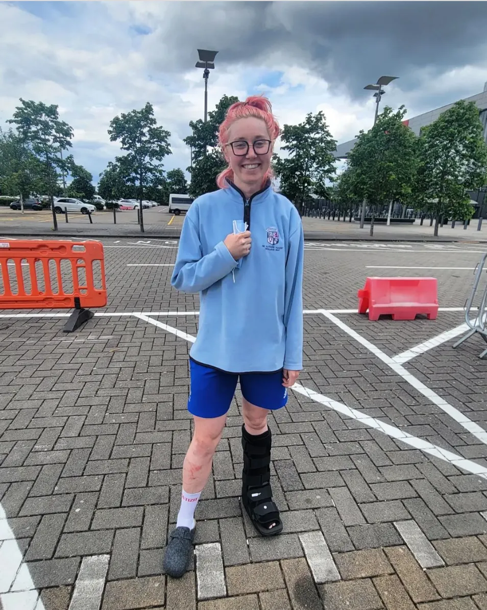Cô chia sẻ trên mạng xã hội: “Không thể nói tôi yêu năm 2022. Một ngày quang đãng đáng yêu nhưng một người lái xe đã đâm thẳng vào tôi vì không thấy tôi đang vượt qua giao lộ. Hậu quả là dây chằng ở cả hai mắt cá chân của tôi đã bị chấn thương (đau cấp 1 ở mắt cá chân phải và đau cấp 2 ở trái) nhưng may mắn là không dây chằng nào bị đứt. Thứ duy nhất bị đứt gãy chính là chiếc xe đạp của tôi.