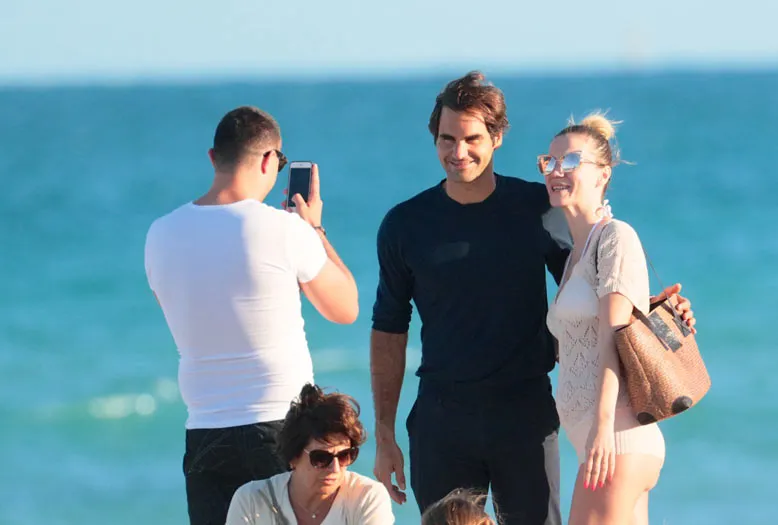 Tay vợt người Thụy Sĩ đang có mặt ở Miami chuẩn bị cho giải ATP 1000 thứ 2 trong năm. Không có cô vợ Mirka bên cạnh, “tàu tốc hành” vẫn thể hiện mình là ông bố gương mẫu khi đưa hai đứa con gái đi tắm biển. Tại đây, Federer đã bị một số fan nhận ra và quay quanh xin chụp ảnh.