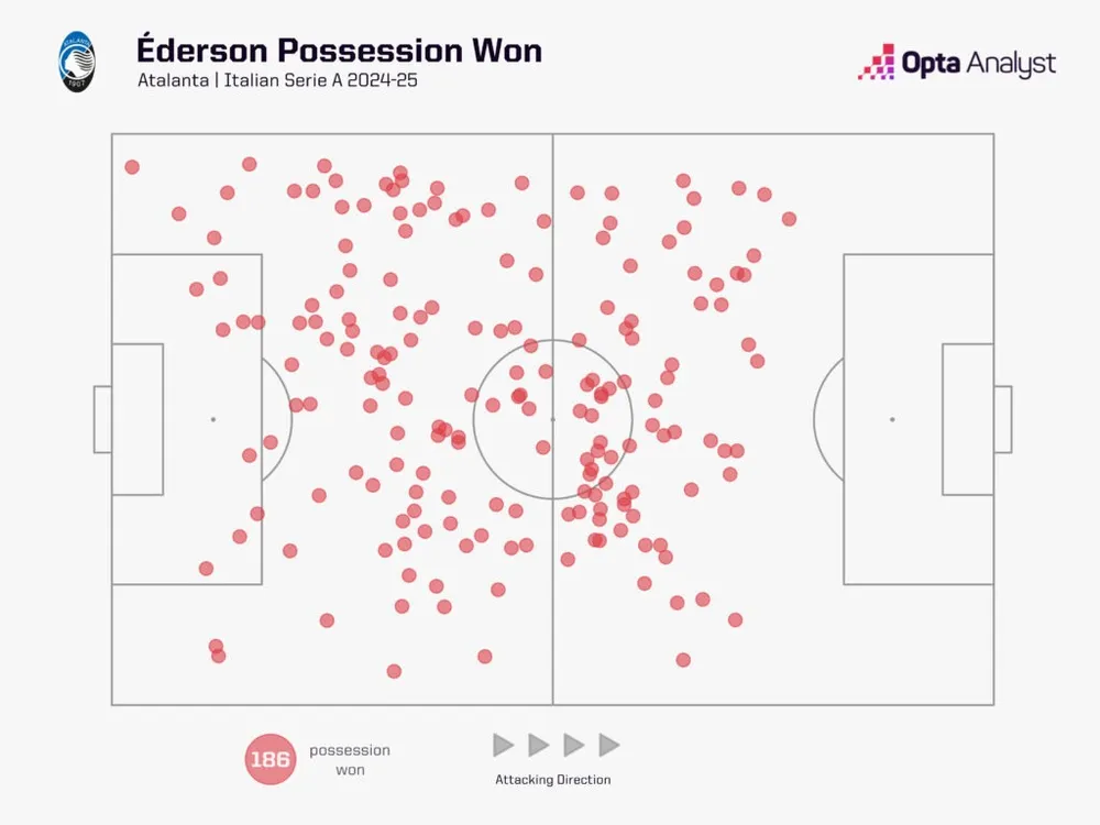 Ngoài việc ghi 4 bàn, Éderson giành lại bóng nhiều thứ hai trong số các tiền vệ ở Serie A (186 lần), chỉ có ba người thắng nhiều tranh chấp hơn (181), và chỉ bốn người thực hiện nhiều đường chuyền hơn (1.932).