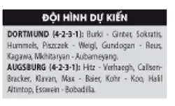 Đối với Dortmund, cuộc đón tiếp Augsburg vào đêm nay sẽ chỉ thật sự có ý nghĩa khi họ giành trọn 3 điểm để ít nhất vẫn giữ được khoảng cách 7 điểm trước đội đầu bảng Bayern Munich, nhất là khi họ đã tiến một bước quan trọng đến giai đoạn đá loại trực tiếp của Europa League sau chiến thắng 3-1 ngay trên sân của Qabala hồi giữa tuần.
