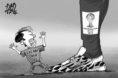 - Đem hỏi, nó gạt ra:“Thôi đi anh! Qượt Cúp được coi là bữa tiệc bóng đá thịnh soạn nhất thế giới, nhưng nghe mấy ông “bình loạn viên” của VTV chỉ muốn nổi da gà, chỉ giỏi “loạn” chứ ít “bình”. Mấy ông đó nói chẳng khác gì đang ăn ngon lành thì lẫn vào đó là những hạt sạn, nhai muốn mẻ răng”.