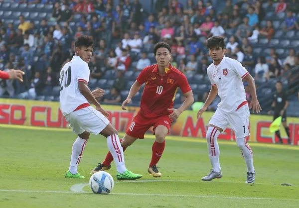 Không phải chờ đợi lâu, khi thời gian của hiệp 1 chỉ đi được 20 phút, Việt Nam đã sớm tạo khoảng cách 2 bàn nhờ vào những siêu phẩm của Nguyễn Quang Hải. Phút 11, từ đường chuyền của Công Phượng, Quang Hải đã tung cú sút chân trái đẹp mắt ghi bàn thắng đầu tiên cho đội nhà. Đến phút 20, cũng từ cú trả bóng của Công Phượng, Quang Hải lại đánh bại thủ môn đối phương bằng cú “lốp” bóng vào góc cao khung thành, nhân đôi cách biệt cho đội nhà.