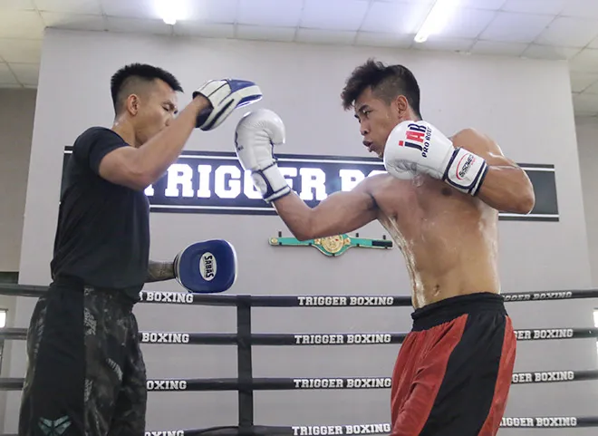 Ông bầu Kim Sang-bum (trái) huấ luyện tại Cocky Buffalo (quận 7). “Cocky Buffalo có cả lớp tập quyền Anh phong trào cho cả người lớn lẫn trẻ em và luôn có các gói khuyến mãi đi kèm. Đội ngũ huấn luyện của trung tâm quy tụ các HLV giỏi của Philippines, Hàn Quốc lẫn Uzbekistan”, chị Khanh là quản lý của lò Cocky Buffalo cho biết.