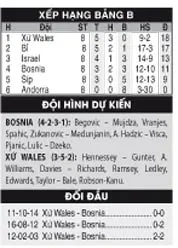 Nhưng Xứ Wales không muốn phải chờ đến giữa tuần sau. “Chúng tôi muốn giành chiến thắng”, tiền vệ Ramsey đầy quyết tâm. Đó cũng là quyết tâm chung của Xứ Wales khi làm khách của Bosnia. Phong độ thất thường của Bosnia là yếu tố để Xứ Wales chờ đợi điều kỳ diệu trên sân khách.