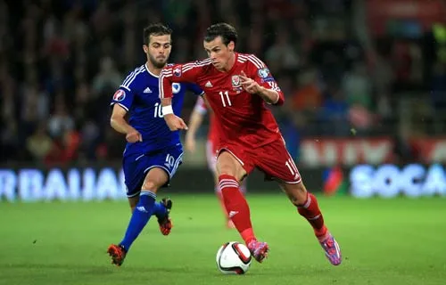 Bale của Xứ Wales (phải) quyết lấy điểm trước Bosnia của Pjanic.