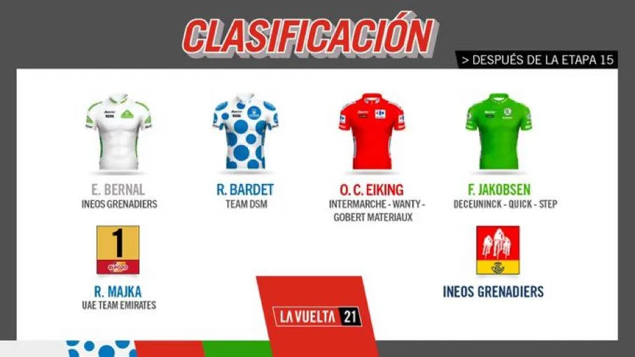Trước khi xuất phát chặng 15 đường đèo dốc 197,5km của Vuelta a Espana 2021 từ Navalmoral de la Mata đến El Barraco, đoàn đua bất ngờ nhận được thông báo tay đua lừng danh Richard Carapaz và đồng đội và Jhonatan Narvaez (Ineos Grenadiers) bỏ cuộc. Trong khi đó, tay đua người Ecuador Jonathan Caicedo (EF Education-Nippo) cũng trở về nhà.