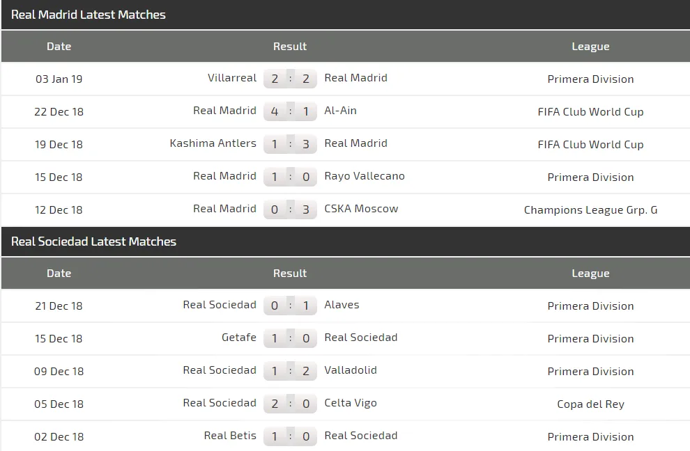 Tuy nhiên, Solari sẽ chẳng thể biện minh điều gì nếu không thắng Sociedad trên sân nhà. Sociedad chưa bao giờ là mối bận trâm của Kền kền trắng khi họ thắng dễ trong 7 lần gặp gần nhất, ghi 22 bàn mà chỉ lọt lưới 5 bàn.