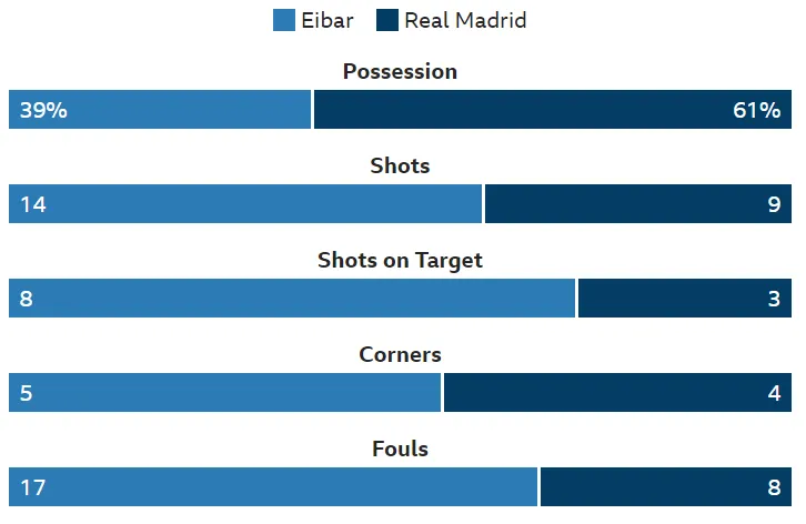 Trước trận đấu này, Eibar chưa bao giờ thắng được gã khổng lồ Real Madrid. Nhưng lịch sử đã thay đổi ở phút 16 khi Escalante ghi bàn. Tiền đạo người Argentina phải chờ trọng tài kiểm định lại bằng VAR trước khi công nhận bàn thắng quý giá của chủ nhà.