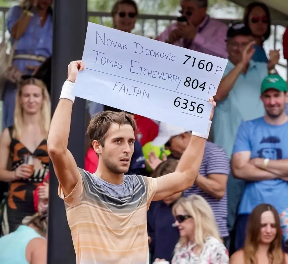 Trong suốt sự nghiệp non trẻ mới chỉ 6 năm tuổi của mình (Etcheverry dấn thân vào ATP từ 2021 nhưng mà trước đó đã tham gia hệ giải của ITF từ năm 2017), chàng trai sinh năm 1999 tại La Plata (thủ phủ của tỉnh Buenos Aires) luôn lấy Djokovic làm “thước đo thành tích”. Ngay khi anh vừa giành được... điểm số đầu tiên, anh đã so sánh kết quả của bản thân với kết quả của Djokovic ở trên Bảng điểm xếp hạng ATP, và cứ thế!