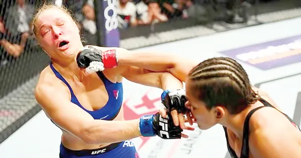 Rousey từng là biểu tượng “nữ quyền” ở UFC, là nữ võ sĩ đầu tiên thượng đài ở đấu trường UFC và khiến giải đấu này càng thêm màu sắc và sôi động với những đấu thủ nữ vừa hấp dẫn, vừa dữ dội. Tuy vậy, cô đã dần đánh mất chất máu lửa, chiến binh của mình. Sau trận thua trước Nunes chỉ sau 48 giây, trận thua thậm chí còn “Quá nhanh và quá nguy hiểm” hơn… bộ phim Biến mất trong 60 giây của Nicolas Cage, có lẽ Rousey sẽ có những lựa chọn riêng cho mình trong cuộc đời sắp tới. Dự báo, cô sẽ rời khỏi UFC, gia nhập làng WWE, nơi cô vẫn có thể thủ thắng nhờ chiêu trò của kịch bản, hoặc trở thành một… Bond-Girl mới trong phim mới Điệp viên 007, nơi người ta cần vẻ ngoài quyến rũ kiểu chiến binh, hơn là chất chiến binh ở bên trong.'
