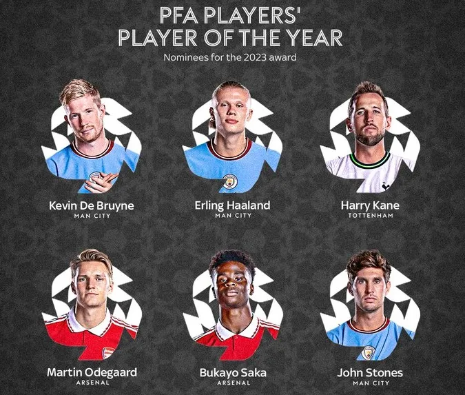 Danh sách rút gọn cho giải thưởng Cầu thủ xuất sắc nhất năm 22/23 của PFA