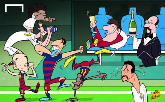 Sau khi Neymar ghi bàn nâng tỷ số lên 2-0 ở phút 39 thì tất cả đã hiểu mọi thứ đã chấm hết với Real Madrid. Cái cách siêu sao người Brazil ghi bàn thật ấn tượng, anh di chuyển thông minh để phá bẫy việt vị, sau đó nhận bóng, dẫn bóng và dứt điểm tinh tế qua tay thủ môn đối phương, cho thấy sự tập trung cao độ và tự tin tối đa của cầu thủ Barca ở trận đấu này. Sau bàn thua ấy, Real Madrid gần như sụp đổ hoàn toàn, Santiago Bernabeu, pháo đài kiên cố lâu nay, điểm tựa tinh thần của đội bóng hoàng gia đã bị đánh sập.