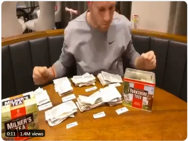 Ngôi sao 34 tuổi của Liverpool đầu tiên đã đăng tấm anh anh đang xếp những gói trà, từng cái một, như một cách để “khoe” với thiên hạ là gã suốt ngày lêu lổng trên sân cỏ cũng là người đàn ông của gia đình vả biết cách… làm việc nhà. Thật ra James Milner muốn phản ứng lại kiểu phô trương của bạn đồng đội Alex Oxlade-Chamberlain khi tuyển thủ Anh này vừa đang một clip video đình đám với cảnh nhảy múa trên bậc cầu thang bên cạnh bạn gái là ngôi sao nhạc pop Perrie Edwards.