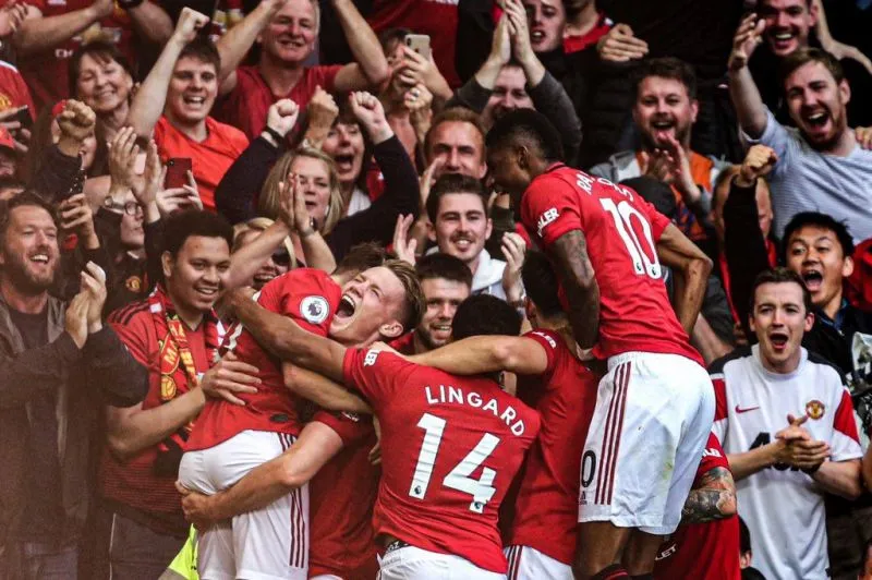 Aaron Wan-Bissaka, Jesse Lingard, Scott McTominay và cuối cùng là cả đội đã lao vào chú nhóc để chia sẻ niểm vui. McTominay là người kịch động nhất trong số các đồng đội, gần như cậu ta muốn James ghi bàn nhiều hơn chính… James.