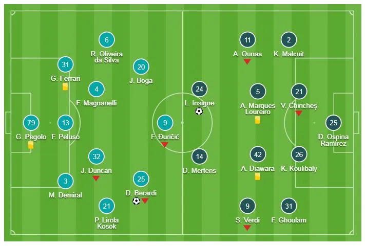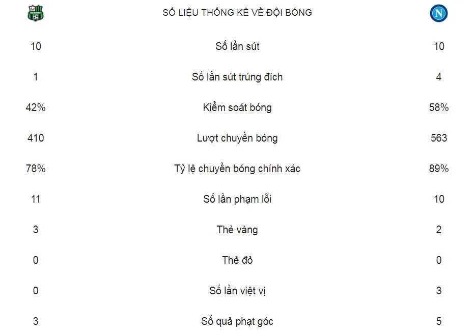 Trận hòa trên sân của Sassuolo khiến Napoli gần như không còn cơ hội tranh ngôi vô địch Serie A cùng Juventus vì cách biệt giữa 2 đội là 18 điểm và Serie A chỉ còn 11 vòng đấu nữa. Domenico Berardi mở tỷ số cho chủ nhà Sassuolo và phút 86 tiền đạo Lorenzo Insigne kịp gỡ hòa 1-1. Napoli gần như đã khép lại giấc mơ vô địch.