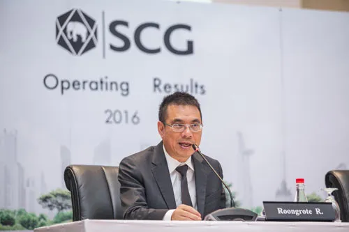 Ông Roongrote Rangsiyopash, Chủ tịch kiêm Tổng Giám đốc Điều hành SCG, công bố năm 2016 mức độ tăng trưởng lợi nhuận 24% so với năm 2015 nhờ vào ngành hóa dầu và chi phí năng lượng.