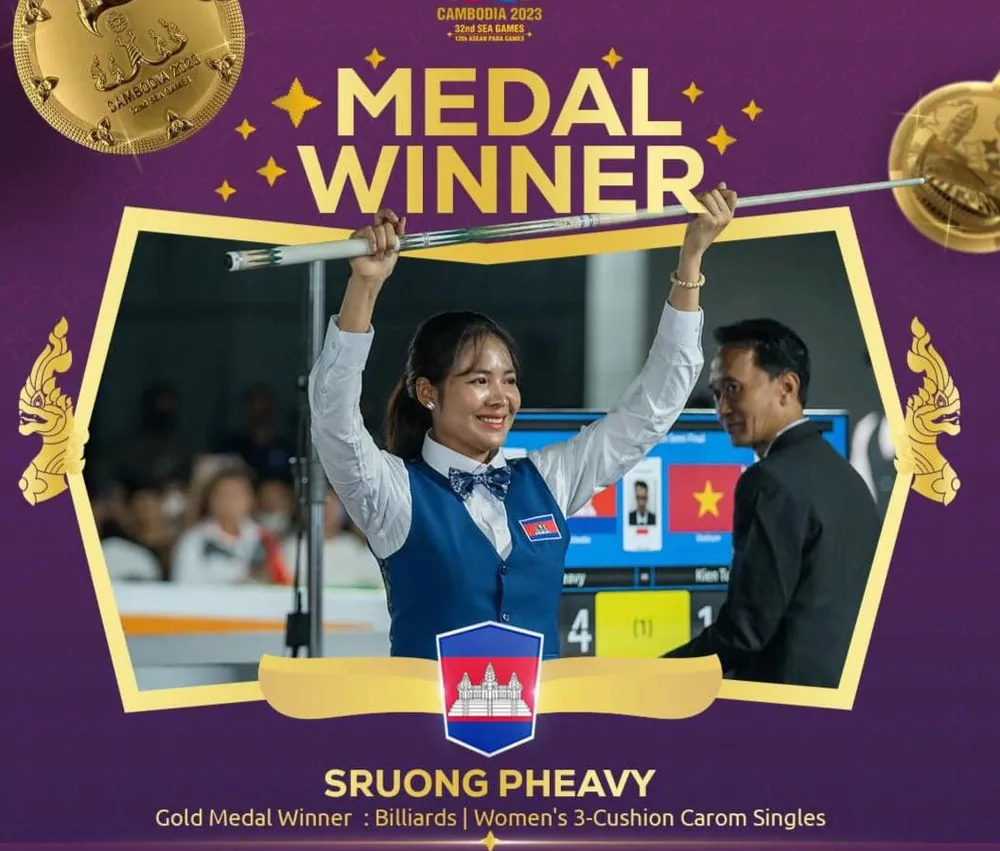 Với sức mạnh và trình độ vượt trội, Sruong Pheavy dễ dàng đánh bại Phùng Kiện Tường với tỷ số cách biệt 25-10 để lọt vào trận chung kết diễn ra vào tối nay gặp Nguyễn Hoàng Yến Nhi khi cơ thủ gốc Đà Nẵng đánh bại Santhinee (Thái Lan) với cùng tỷ số 25-10.