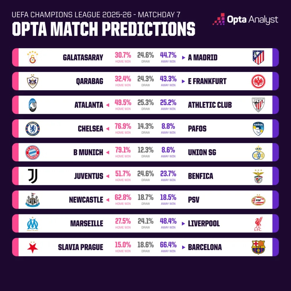 Lượt trận này cũng chứng kiến sự ra mắt của Liam Rosenior trên băng ghế huấn luyện của Chelsea tại đấu trường danh giá nhất châu Âu. Tiếp đón Pafos tại Stamford Bridge, Chelsea là ứng viên nặng ký nhất với 76,9% cơ hội thắng. Sau những thăng trầm, Chelsea cần một chiến thắng hủy diệt để khẳng định rằng sự thay đổi trên băng ghế chỉ đạo không làm lung lay tham vọng của họ.