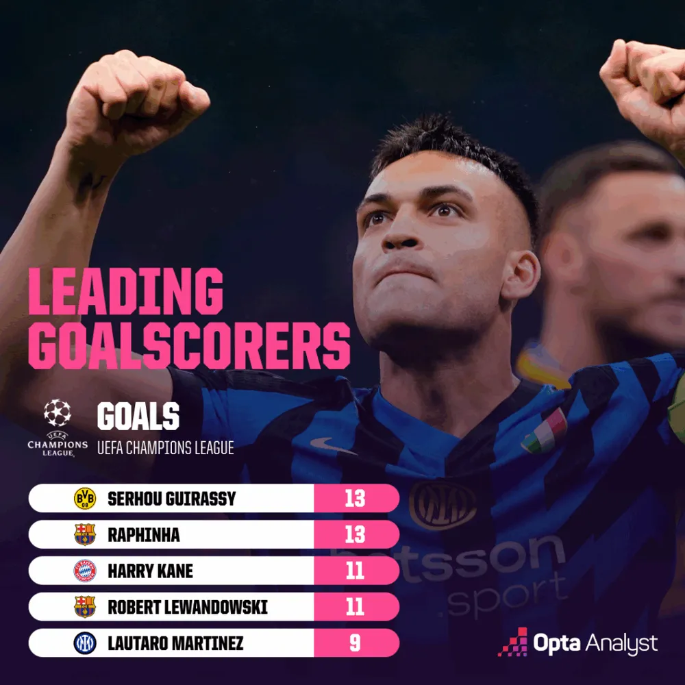 Ousmane Dembélé (PSG) đã ghi 8 bàn và kiến tạo 4 lần tại Champions League mùa này – thành tích tốt nhất của một cầu thủ PSG trong một mùa giải. Trong khi đó, Lautaro Martínez (Inter) đã ghi bàn ở vòng 16 đội, tứ kết và bán kết. Anh cần thêm 1 bàn nữa để trở thành cầu thủ Inter đầu tiên ghi 10 bàn trong một mùa giải Champions League.