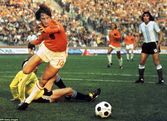 Nổi bật nhất là cố danh thủ Johan Cruyff, ông là huyền thoại của Ajax, người khai sinh lối chơi tấn công trứ danh của Bacerlona và cũng chính là tượng đài của đội bóng xứ Catalan. Đặc biệt, cố danh thủ Johan Cruff chính là cầu thủ đưa tiếng tăm của Cơn lốc màu da cam bay cao bay xa hơn trên bản đồ bóng đá thế giới. Tuy nhiên, huyền thoại Bacerlona và các đồng đội trong thế hệ vàng của mình không thể đưa Cơn lốc màu da cam Hà Lan chạm đến chiếc cúp vàng thế giới, khi thất bại trước tuyển Tây Đức trong trận chung kết tại Wolrd Cup 1974. Đến thời điểm này, một danh hiệu lớn ở cấp độ đội tuyển quốc gia vẫn là sự khao khát và chờ đợi nhất của người hâm mộ xứ sở Hoa tulip.