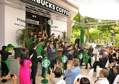 Ngày 23-7, Starbucks Việt Nam khai trương cửa hàng đầu tiên trong chuỗi 3 cửa hàng liên tiếp tại Hà Nội (ảnh). Nằm trong khuôn viên khách sạn Lan Viên, quận Hoàn Kiếm, đây là cửa hàng được thiết kế với phong cách đặc trưng của Starbucks kết hợp với những chi tiết đầy sáng tạo dựa trên cảm hứng mỹ thuật truyền thống độc đáo cũng như văn hóa cà phê lâu đời của thủ đô.