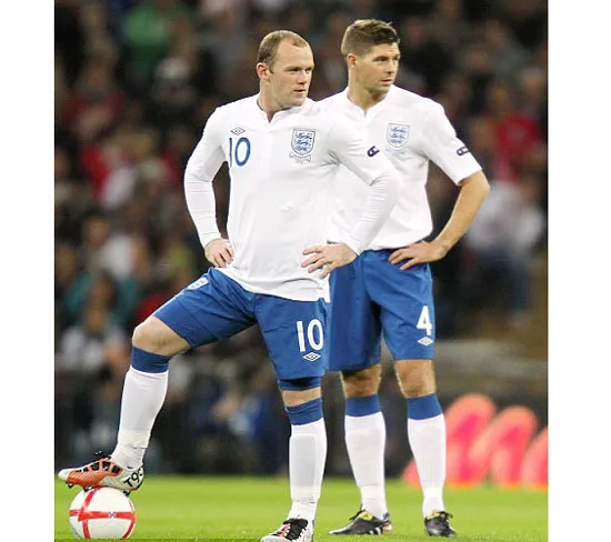 Rooney và Gerrard trong màu áo tuyển Anh.